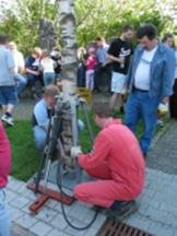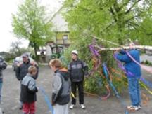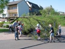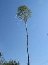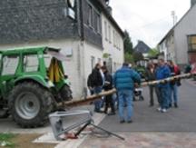 Nach dem Schmücken, das immer noch von den Kindern besorgt wird, hebt man den Stamm in eine eigens dafür hergestellte Befestigung, die per Hydraulik den Baum aufstellt. Obwohl also auch hier der Fortschritt Einzug gehalten hat, findet sich jedoch leider die heutige männliche Dorfjugend (17-25) nur sporadisch ein, um die Tradition weiter leben zu lassen. |